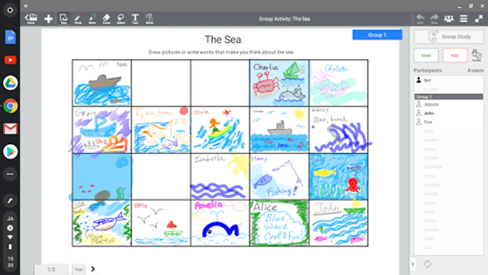 • Teachers can develop lessons from scratch or by marking up imported PDF or Microsoft Office files via Google Drive