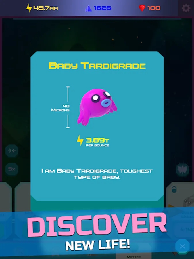 The universe is big, but beginnings are small. With the help of a mysterious tardigrade, merge your way from atoms to galaxies, strategically optimizing your cosmos to maximize energy production.