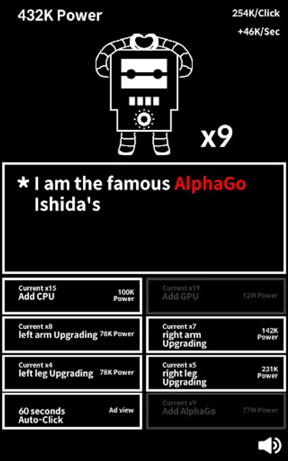 - Collect power by touching the screen, you can choose to upgrade Alpha.