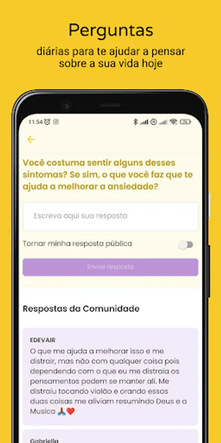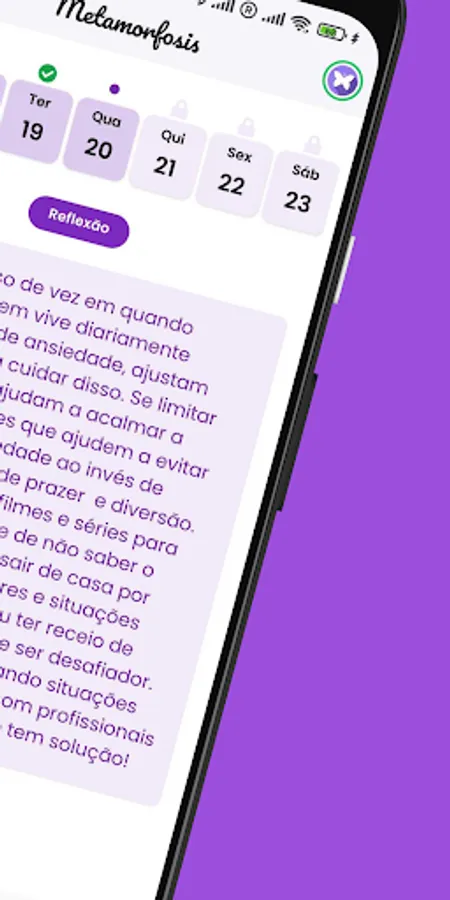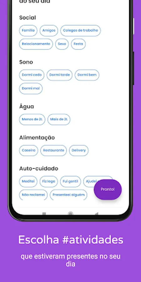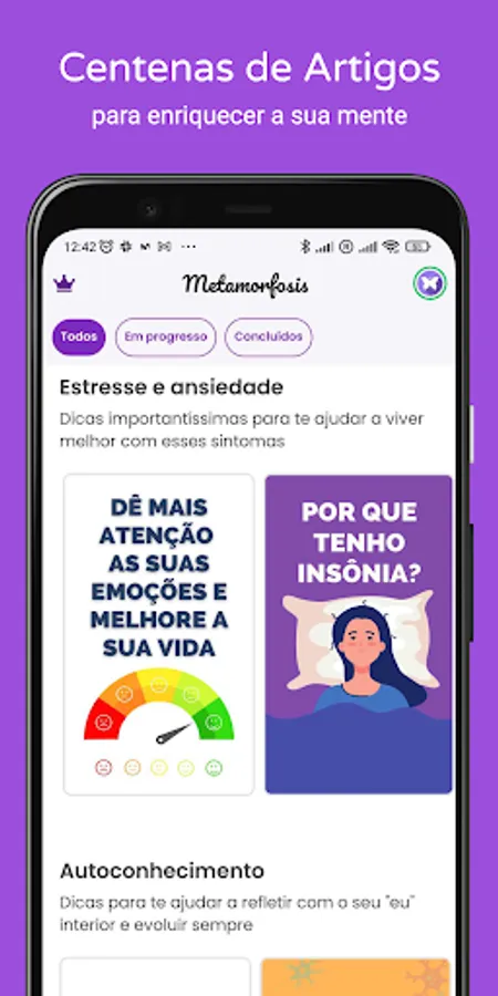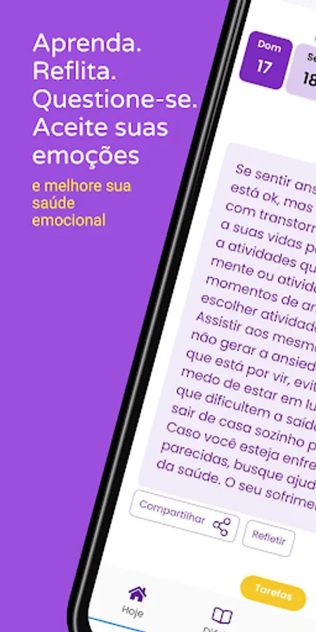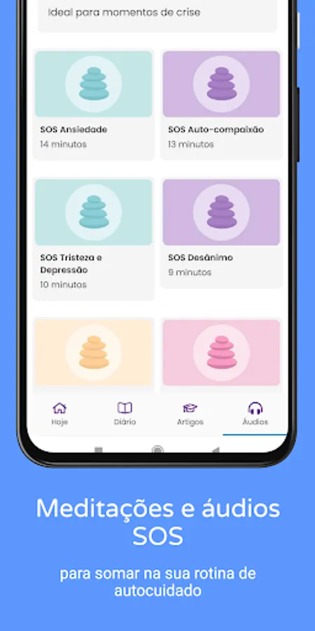 In addition to all this you also have articles, audios of relaxation and meditation and the best emotional diary of the Brazilian Play Store, you also have a 100% anonymous Advice and Outreach service, where you can open up, without judgment, and ours team will help you to follow the right path.