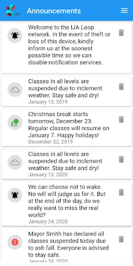 Using IJA Loop, parents and guardians of children enrolled at Infant Jesus Academy (Marikina, City Philippines) will be notified whenever their wards enter or leave campus. They can also receive important announcements such as Class Suspensions, Holidays and school activities.