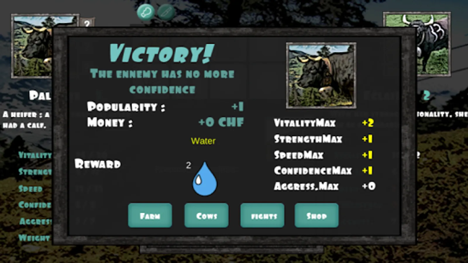 Warning / Disclaimer This game includes videos of cow fights. It is important to note that the Herens breed fights instinctively, as the cows have retained the instinct to organize themselves into a social hierarchy, and that injuries are rare. Animal fights are forbidden by Swiss law, except for the Herens cow fights. However, if you are highly sensitive, we advise against watching the videos.
