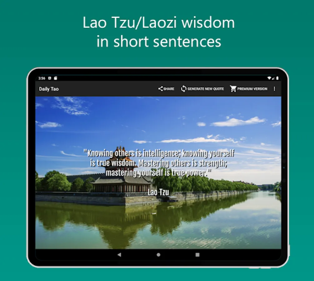 With our app we'll bring you the most inspiring teachings contained in the ancient book Tao Te Ching, atributed to the sage know as Lao Tzu or Laozi and constituting a fundamental part of the philosophy of Taoism.