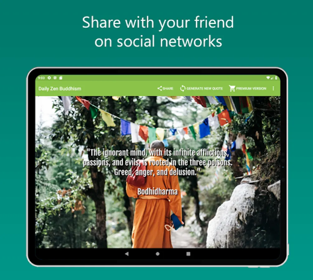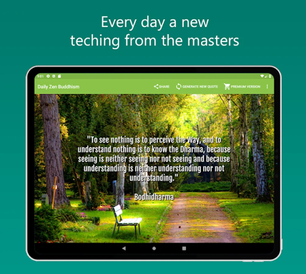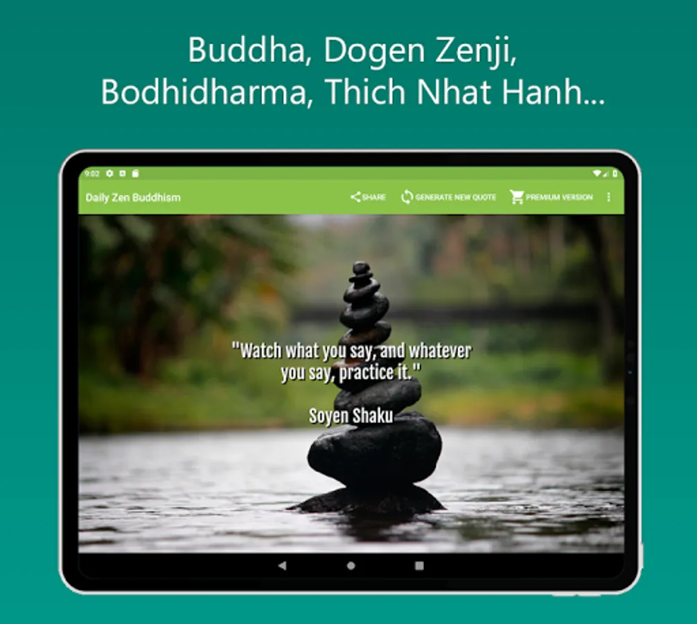 With our app we'll try to bring to you the most inspiring teachings from Buddha himself and famous Zen masters in a simple way, one quote a day.