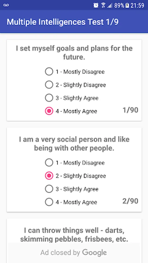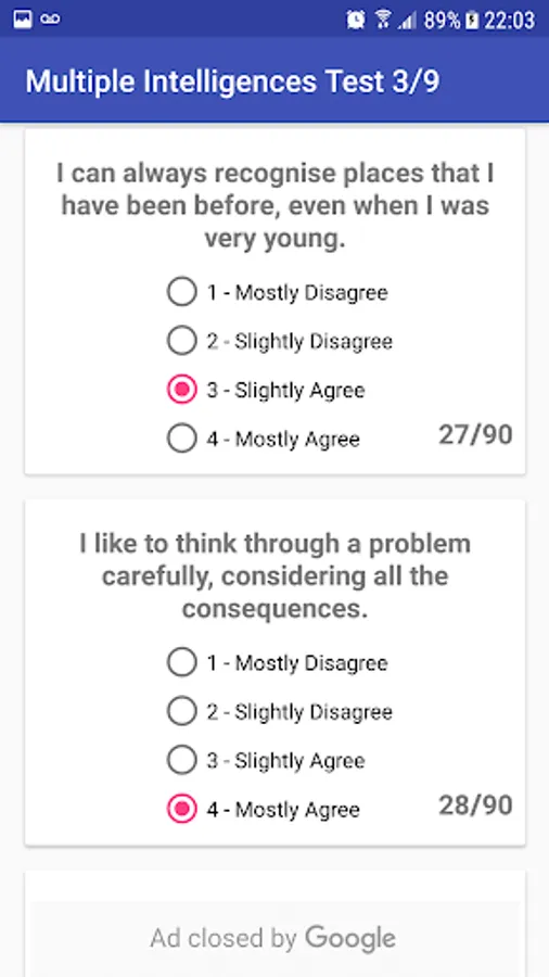 Multiple Intelligence Test based on Howard Gardner's theory.