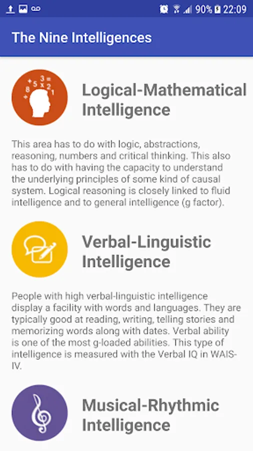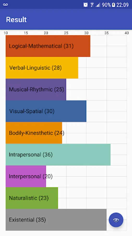 As a result you will have a detailed bar chart, plus a description of each intelligence.