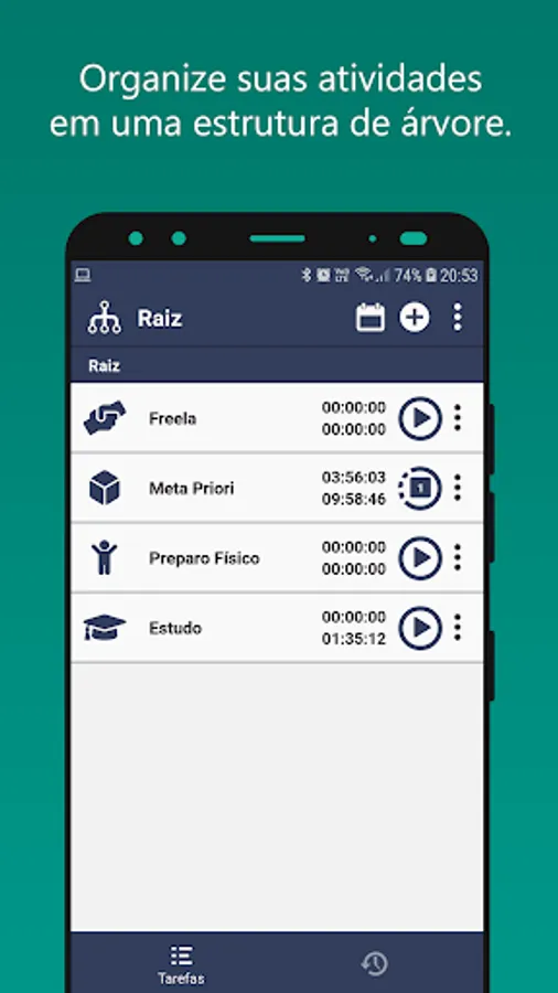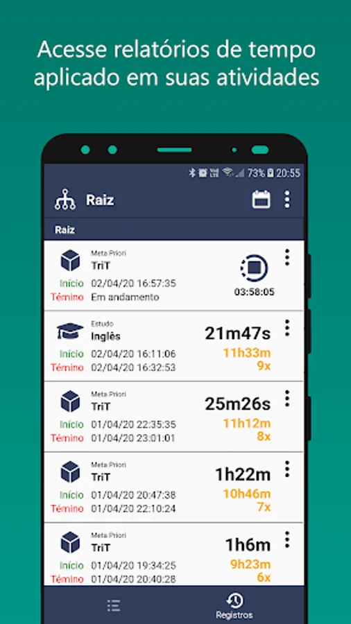 TriT is the perfect tool for organizing your time, allowing activities and sub-activities to be registered in a tree format, that is, defining comprehensive and specific tasks.