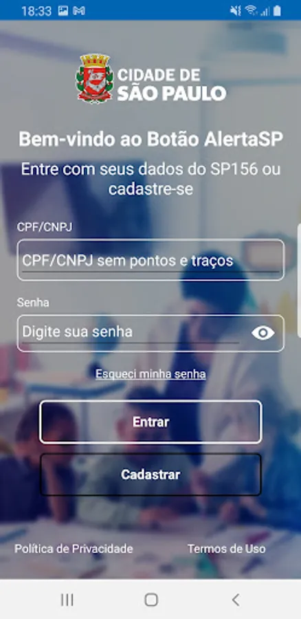 This application allows you to log in using the same credentials as the SP156 portal or create a new registration, but only those registered by the São Paulo Municipal Department of Education (SME) will be allowed to use its features. The functionalities consist of: