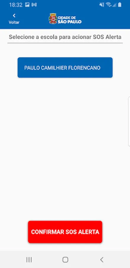 2. Activate the “SOS Alert” button, choose which school unit needs help and confirm the alert;