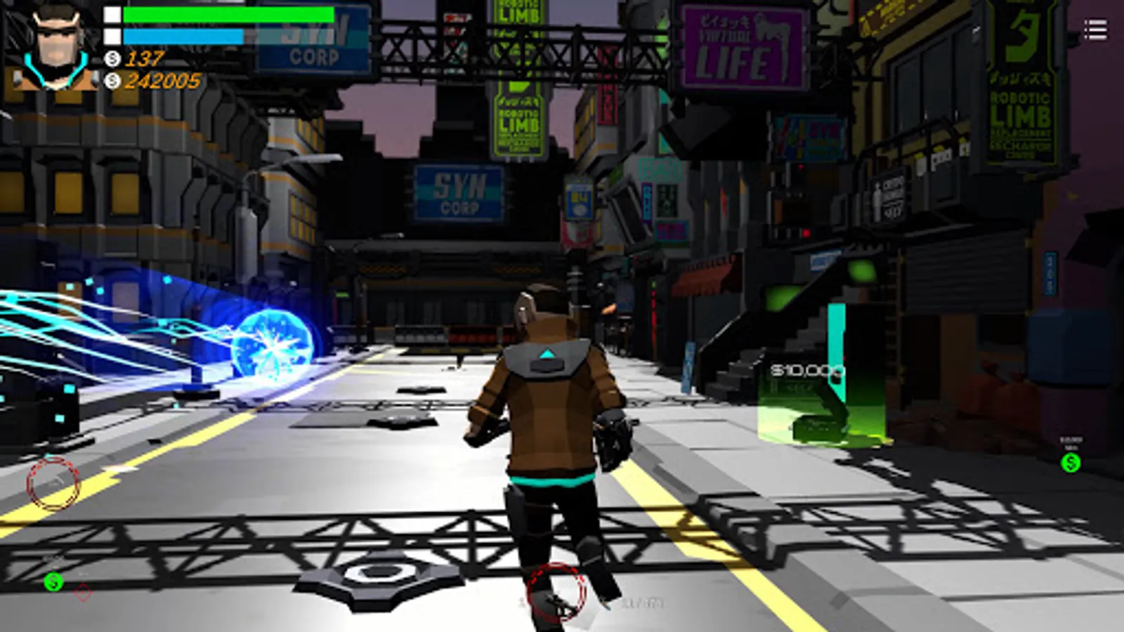 You play as Jake with one goal. Reclaim your empire ! Take on the other syndicates to occupy the establishments once controlled by you 300 years ago. Earn protection credits from each block you reclaim. Bribe and fight your way to freedom.