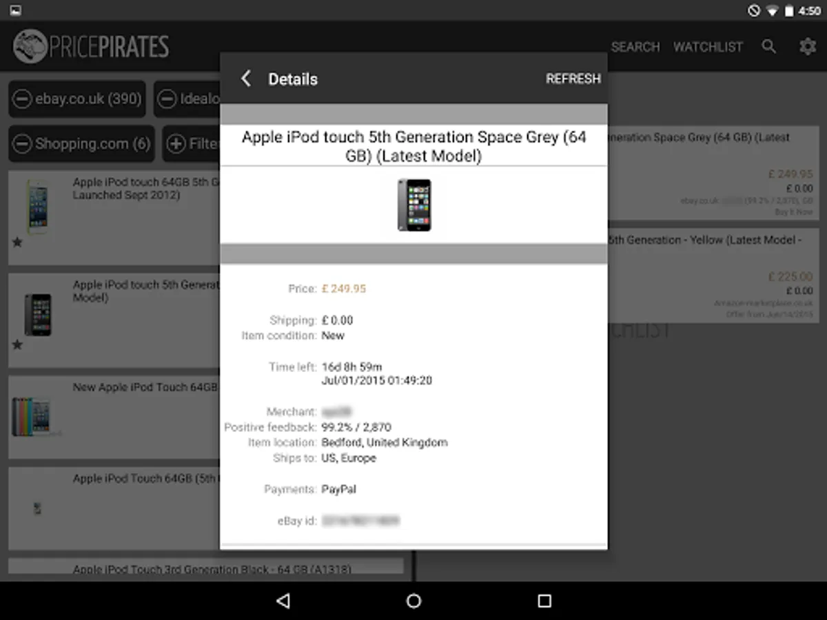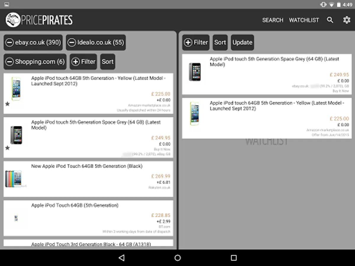 With the Pricepirates price comparison tool you will be able to find out right away while you are on the go whether those so-called special offers truly are great deals. Pricepirates searches through a vast range of prices for items on eBay, Shopping.com and in its own database of products from over 55,000 online shops in Germany, Austria, Switzerland, the UK and the USA.