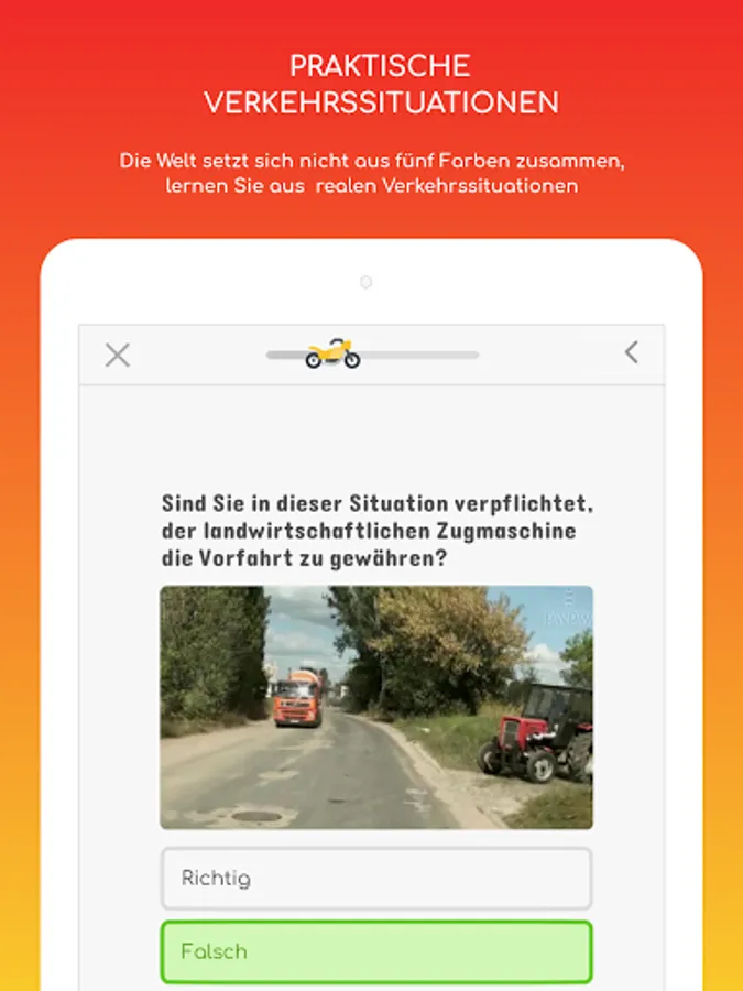 The most advanced learning application to prepare for the driver's license certificate. The application offers questions that are similar to those that you may encounter during the final driver's license test (TÜV Dekra) and is supplemented by a massive amount of real-world traffic situations. 🚗 🏍 🚌 🚛