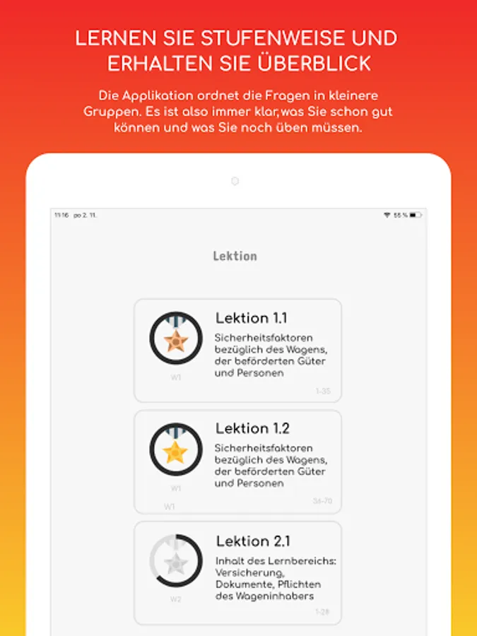 5. Success statistics in individual lessons and in the practice test