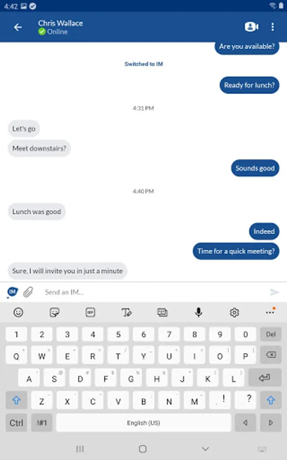 • Quickly see if colleagues are available, away, or in a meeting with integrated presence synced across all devices