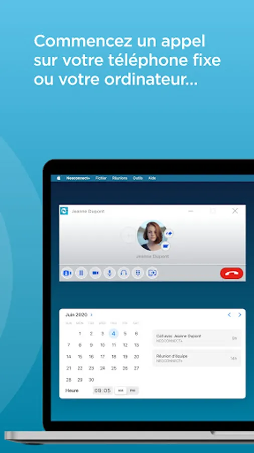 Neoconnect + supports voice calls (internal and external), videoconferencing and instant messaging. In all your configurations, you can also quickly exchange documents, work together on their development and plan the next steps.