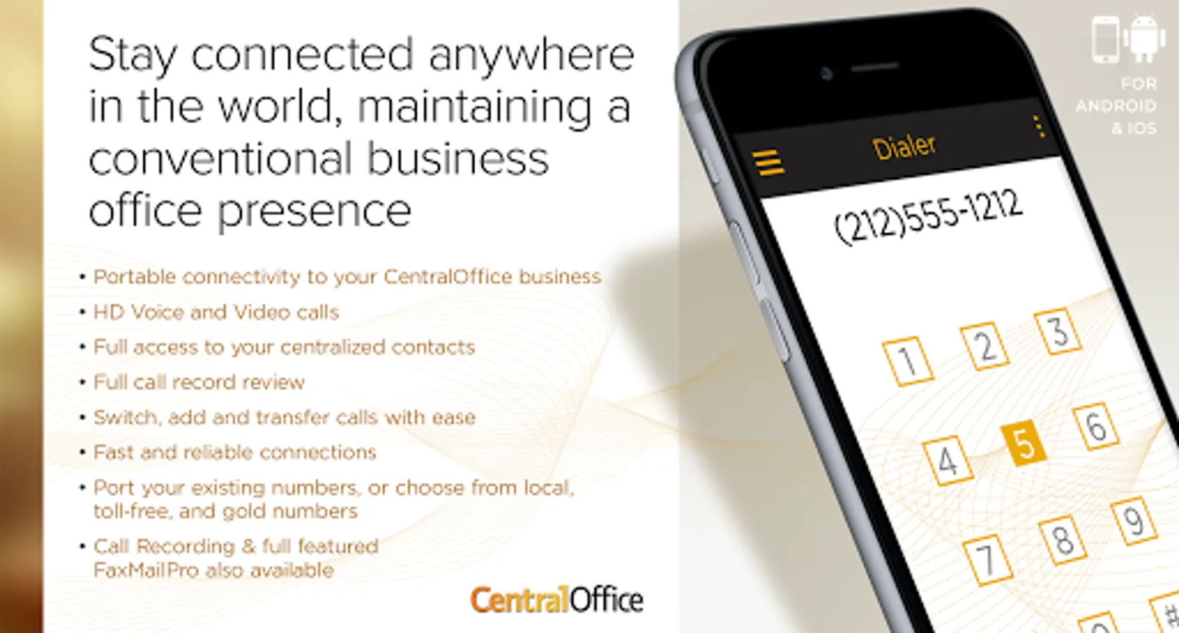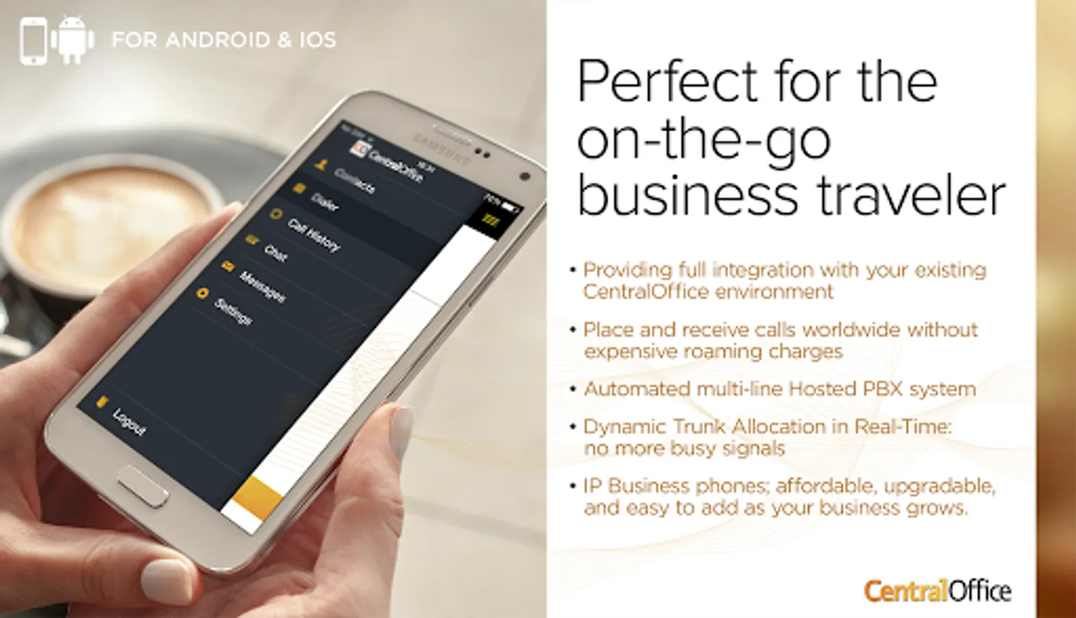 The CentralOffice smartphone app is perfect for the on-the-go business traveler providing full integration with your existing CentralOffice environment.