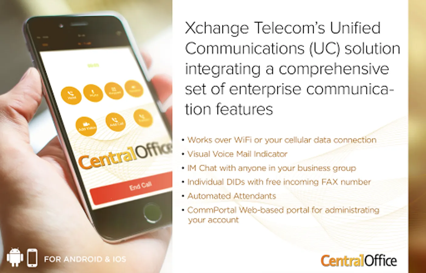 CentralOffice is Xchange Telecom’s Unified Communications (UC) solution integrating a comprehensive set of enterprise communication features.
