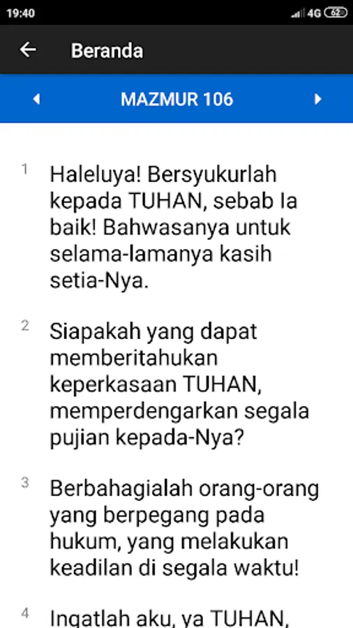 The Multi-Language Bible Application is designed to make it easier for anyone who wants to read the Word of God in various local languages in Indonesia. At present the Multi-Language Bible consists of two languages namely Indonesian and English and is in the process of being used in several regional languages.