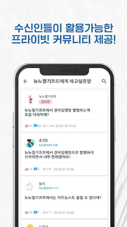 Through a platform called certificates, news, schedules, card news, etc. can be provided to recipients, and a community that can only be used by recipients is provided, not only issuing certificates but also providing various additional services.