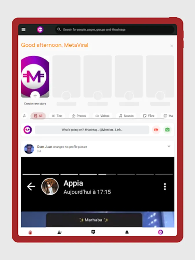 * Connect with friends and family and meet new people on your social media network