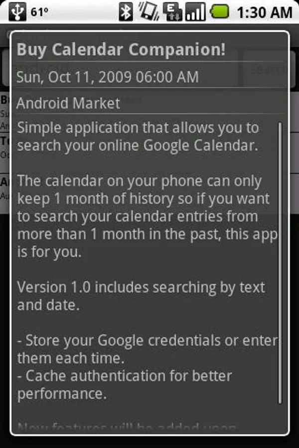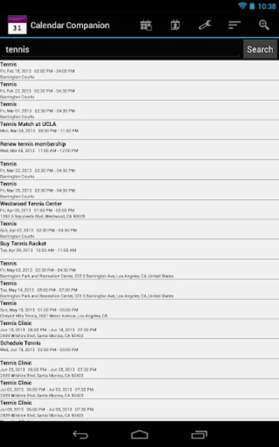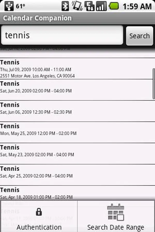 Simple application to search your entire Google Calendar; your phone only keeps a few months of history.