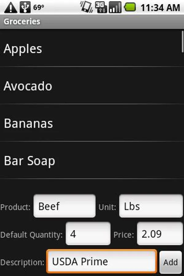 Create shopping lists by typing items or looking them up from updatable lists. Read the help page by pressing menu. Hide or show checked off items, long press item for more options.