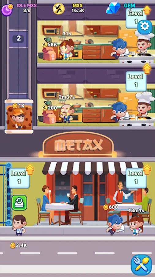 Welcome to the most delicious idle game on the market! Build and manage your own restaurant empire in this casual, fun-filled adventure. Start at the lowest level and work your way up to a 5-star dining experience. Hire and train your staff, unlock new recipes, and upgrade your kitchen equipment to attract more customers. Customize your restaurant to make it stand out from the competition. With simple idle gameplay, you can check in on your restaurants at any time and see them thrive. Download now and become the ultimate restaurant tycoon!".