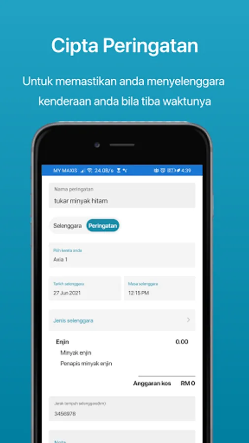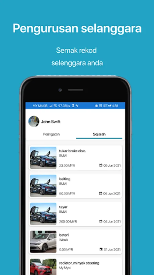 Record the maintenance of your vehicle with the ServiceJer. Set a reminder time to maintain your vehicle.