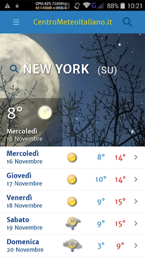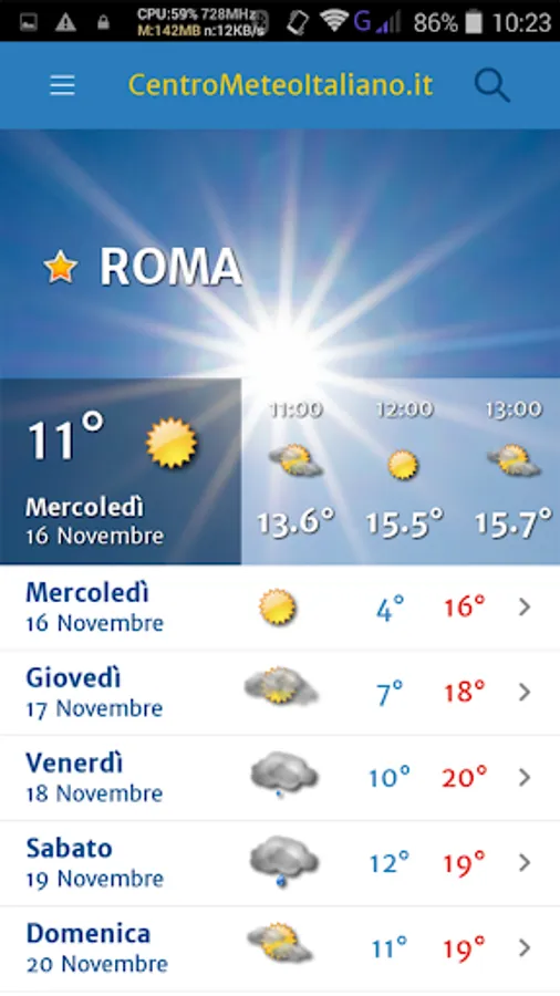 Meteo by Centro Meteo Italiano lets you save your favorite locations and has a georeferencing system to determine your position.