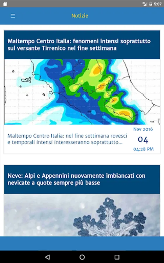 The application, then, is complete with radar, satellite maps and forecasts, a window on changes in weather nowcasting or to discover future scenarios.