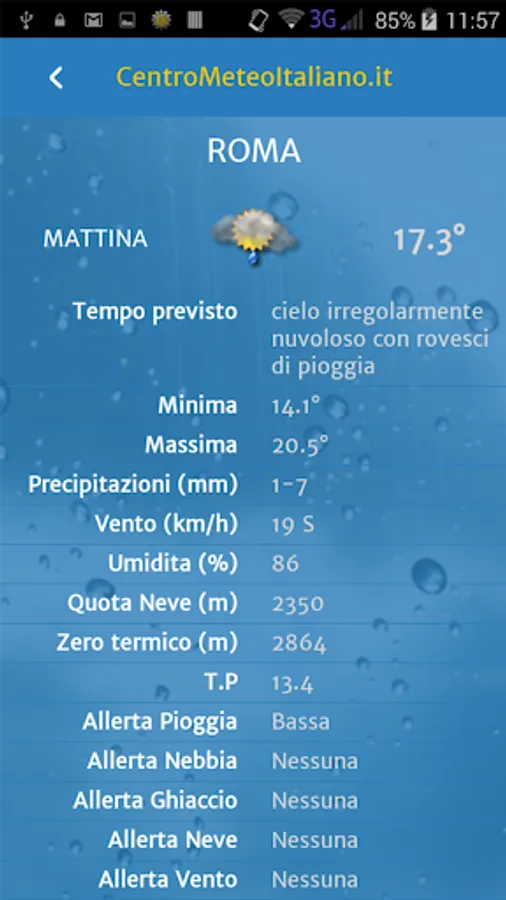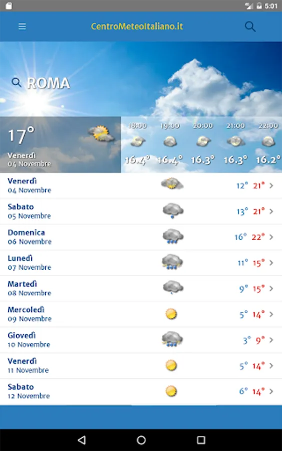 Meteo by Centro Meteo Italiano is a new application of the Centro Meteo Italiano that offers weather related to cities, seaside and mountain in Italy and worldwide high reliability, right on your Android device, smartphone or tablet, with information up to 15 days . The daily forecasts are broken down in detail triorari and time, to provide you with as much information as the state of the sky, high and low temperatures, wind, freezing, snow level and alerts the main meteorological phenomena.
