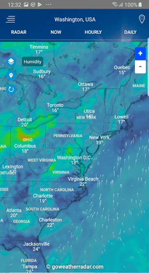 - Search and manage multiple locations: You can check you local radar or check for any location on the world