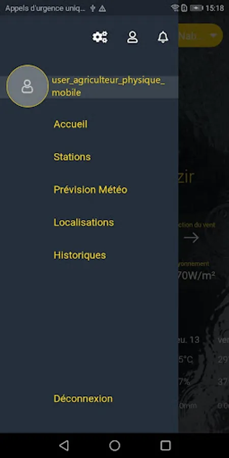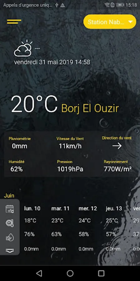 Phyt'Air is a connected weather station, which allows users to take advantage of weather data (air temperature, air humidity, atmospheric pressure, solar radiation, wind speed, wind direction and precipitation) in real time every hour for a day via a mobile app. Phyt'Air also provides two weeks of predicted climate data and keeps all climatic data measured by the weather station.