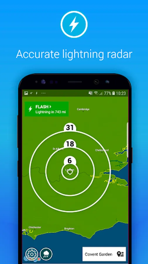 Using the latest data from global weather models combined with high-resolution lightning data, Lightning Alarm is a highly reliable, predictive thunderstorm App that will provide accurate alerts if lightning is is close to you. No matter what you’re doing this App will make sure that you’ll be safe if there’s lightning nearby