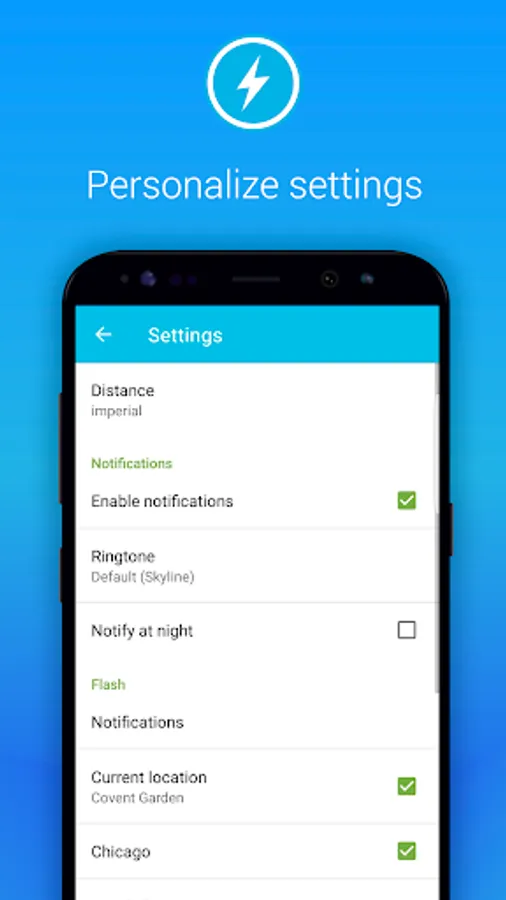 - Message alert sent 15 minutes before lightning is expected at your location