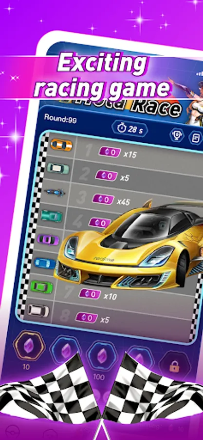 Hey! The game is about to start, what are you waiting for? Look, there are 8 different cars, which car do you think will win the race? Open the app now and show us your unique vision!
