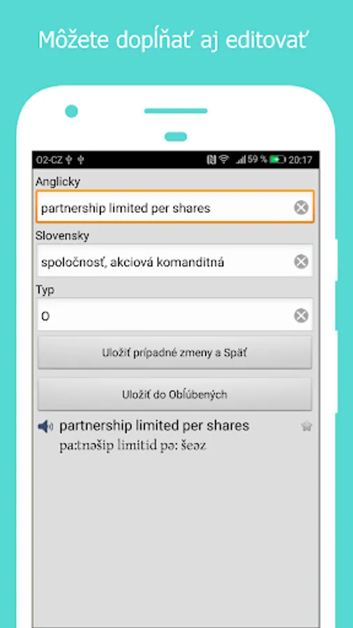 ● Unlike most other mobile dictionaries, this dictionary also allows you to edit and add your own vocabulary and notes.