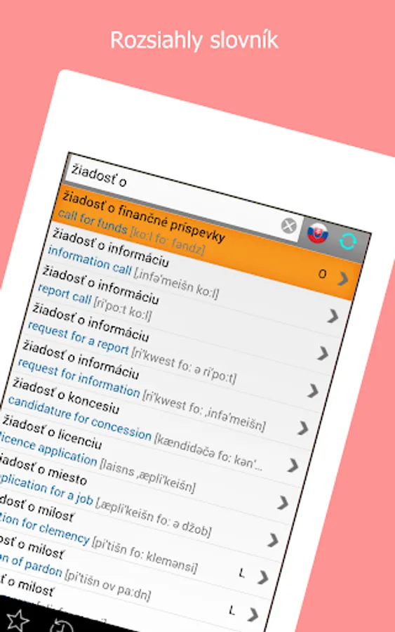 Large English-Slovak and Slovak-English dictionary with spoken and written pronunciation and professional dictionaries from the PC Translator program. This English dictionary has more than 900,000 meaning pairs, which is a range of several book dictionaries. It is intended for everyone who wants to have the most extensive dictionary.