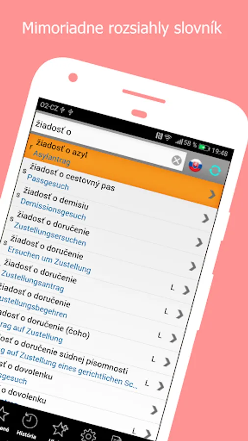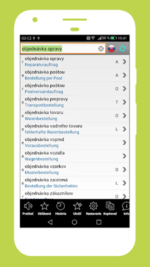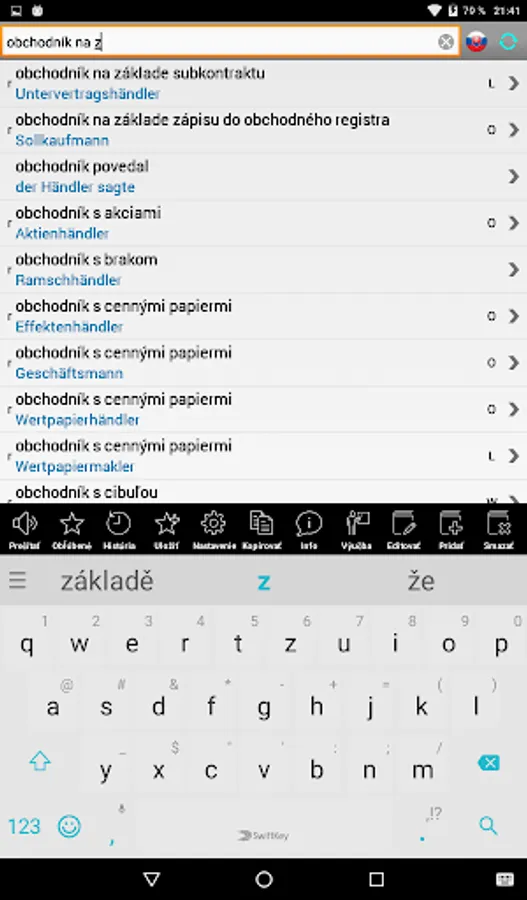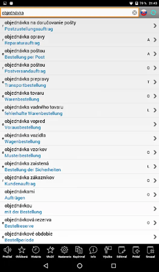 ● Allows automatic two-way search with and without accents (also with the possibility of automatic rotation, ie switching between Slovak and German).