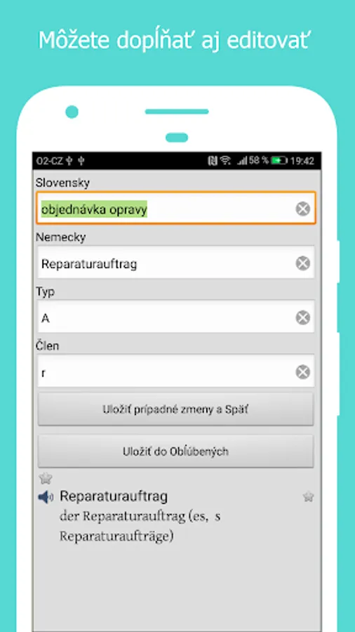 ● It is possible not only to add new words to the dictionary, but also to edit the existing vocabulary, add notes and advance individual translations of the word.