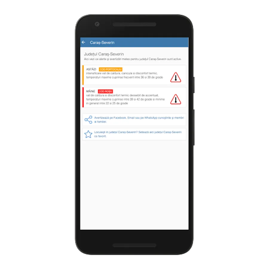 Pelucrând official data provided by the NMA, the application informs you about the intensity of weather phenomena, to be constantly one step ahead of time.