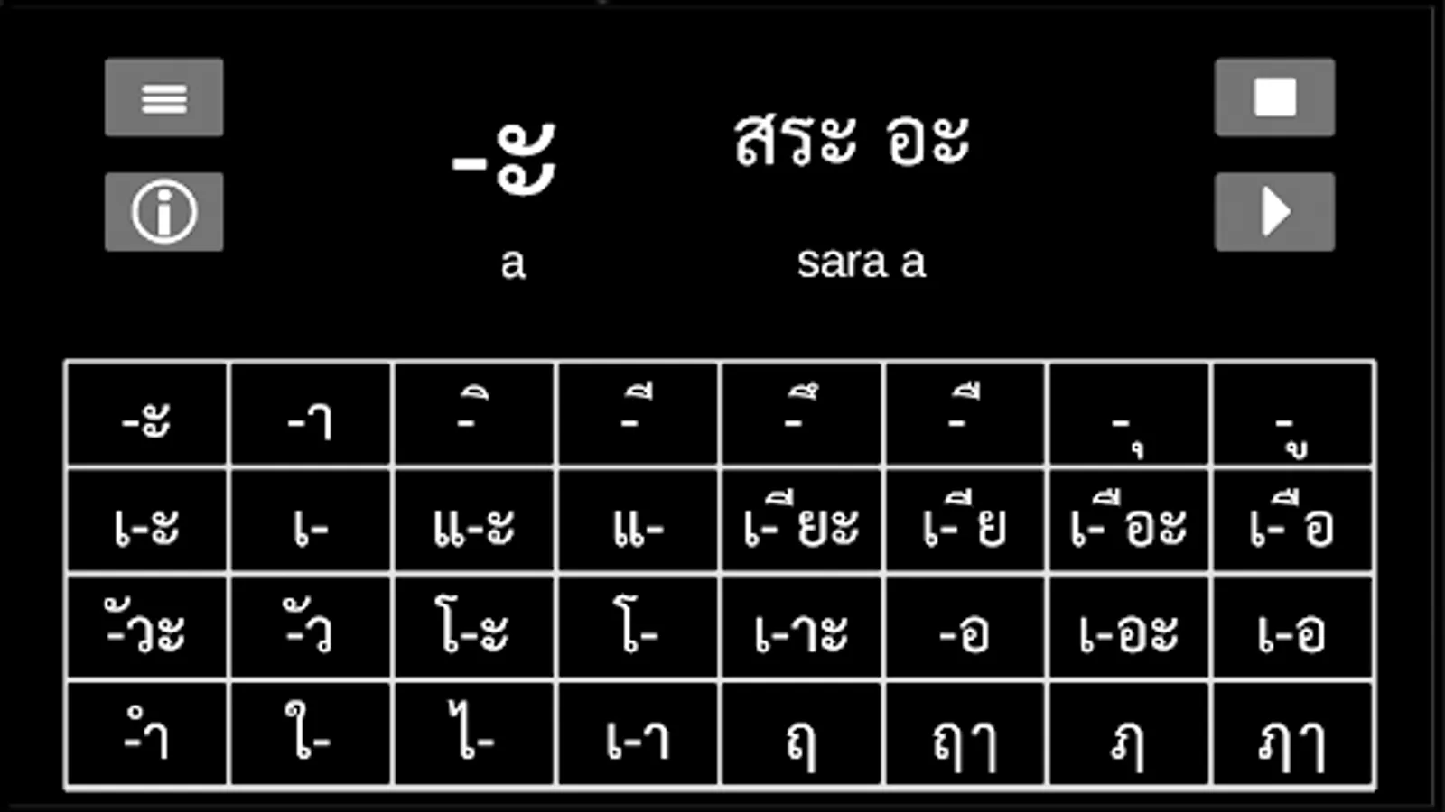 With the Thai Alphabet Trainer you will learn the Thai alphabet, vowels, and numbers.