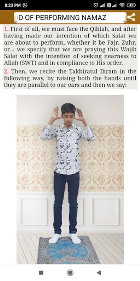 Method of performing Shia Salat for Kids, in English, Urdu, Hindi & Gujarati languages with Arabic script, audio, video, translation and transliteration. Excellent illustrations for Wudhu, Tayammum and Prayers. One of the most important Shia App for yourself and your kids. Learn / correct / check your Namaz / salat / prayer.