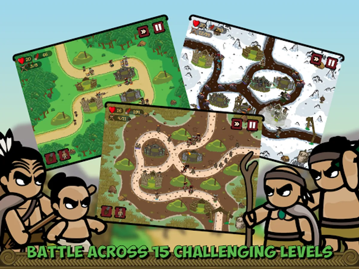 Fight in forests, wastelands and mountains, customizing your defensive strategy placing different specialized Pā, each with unique specialist troops! Then rain comets, summon brave back up warriors and recruit the gods as guardians to help you in battle as you face legendary monster and beasts on a quest vanquish all your enemies!