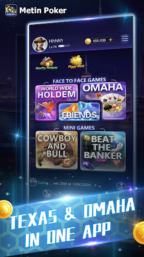 Start your Texas & Omaha Hold'em journey to compete with real worldwide players, and show off your card skills!