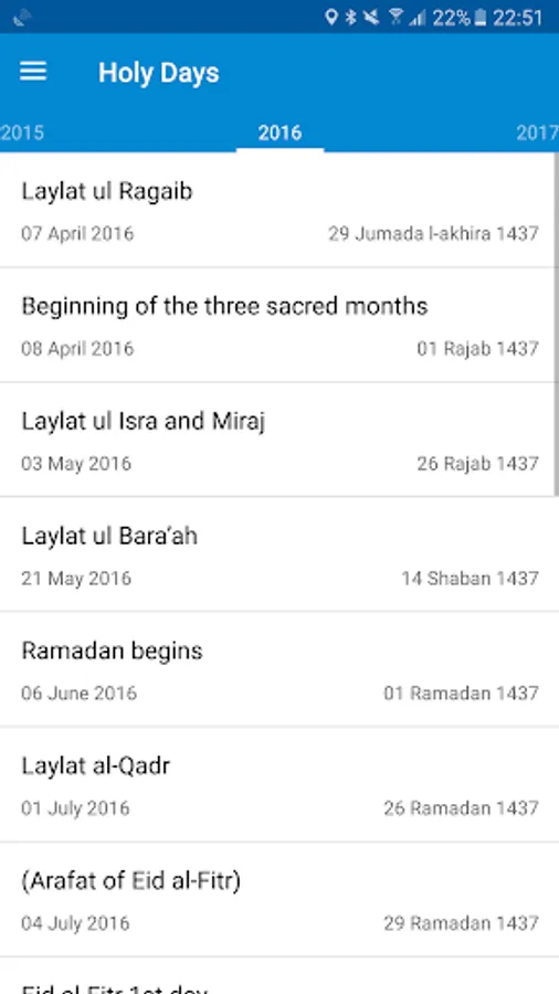 - Large set of downloadable Sounds (Adhan, Du'a etc.)