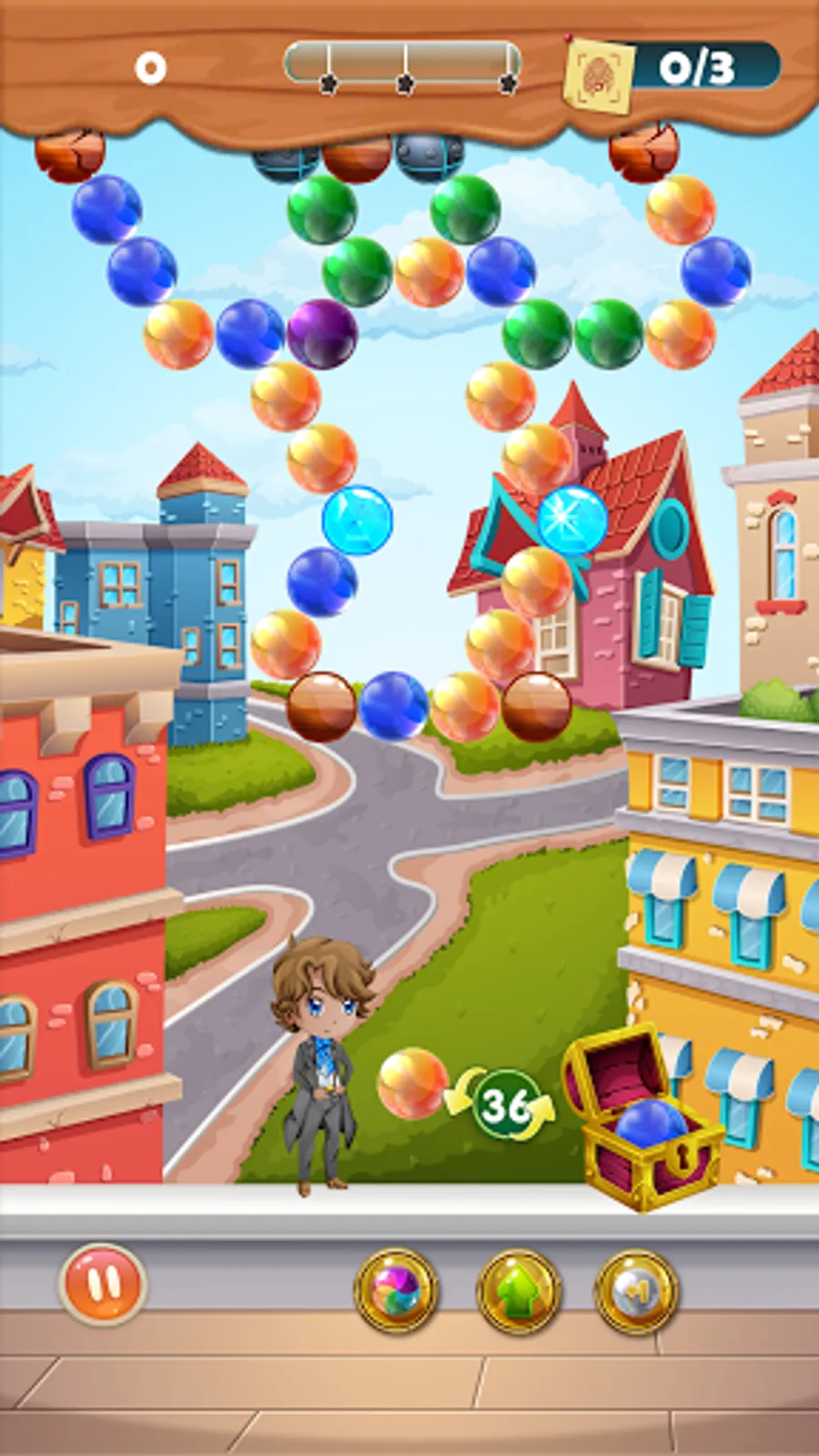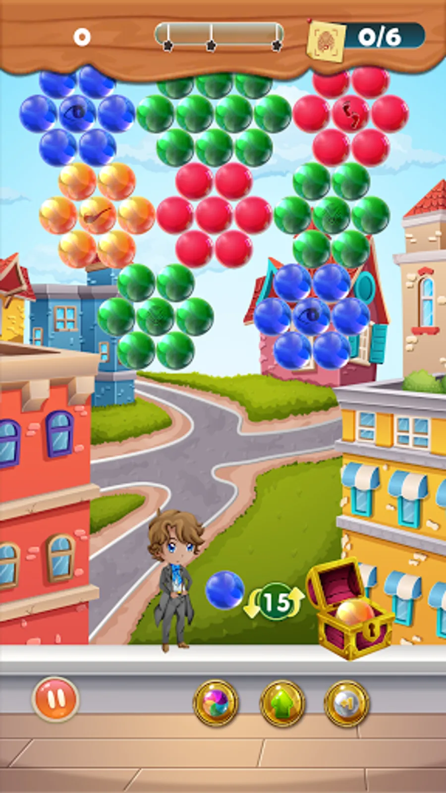 The famous detective needs your help to solve the case! Crimes are rampant in the city, and with every level, comes a new case that you must solve with the detective. The only way to gather clues and dig deep into the matter is to aim and shoot the color bubble towards the color matching cluster and pop the bubbles. As the bubble blast occurs, you can gather more clues as to how you can solve cases in the game.
