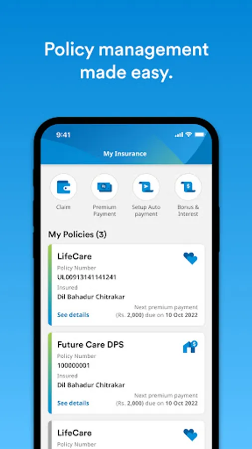 One by MetLife Nepal application allows customers to check their policy details, benefit details, payment due dates, and more in the application, as well as make policy changes and premium payments.