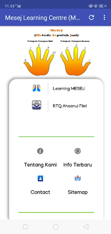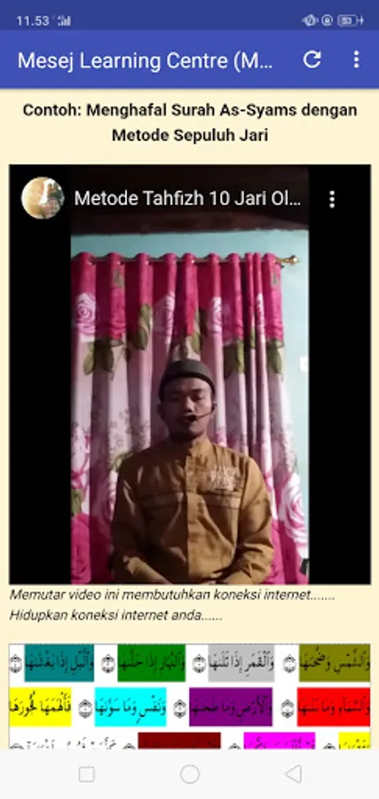 This application includes MeSeJ definitions, MeSeJ advantages, steps to memorize quran with the MeSeJ method, memorizing practices, websites, and quizzes containing the verses of the al-Qur'an. The presence of this application is expected to be used as a guide / guide in learning to memorize al-quran and tahfizhul quran exercises for every group, so that they are familiar and trained in memorizing al-Qur'an using this MeSeJ method.