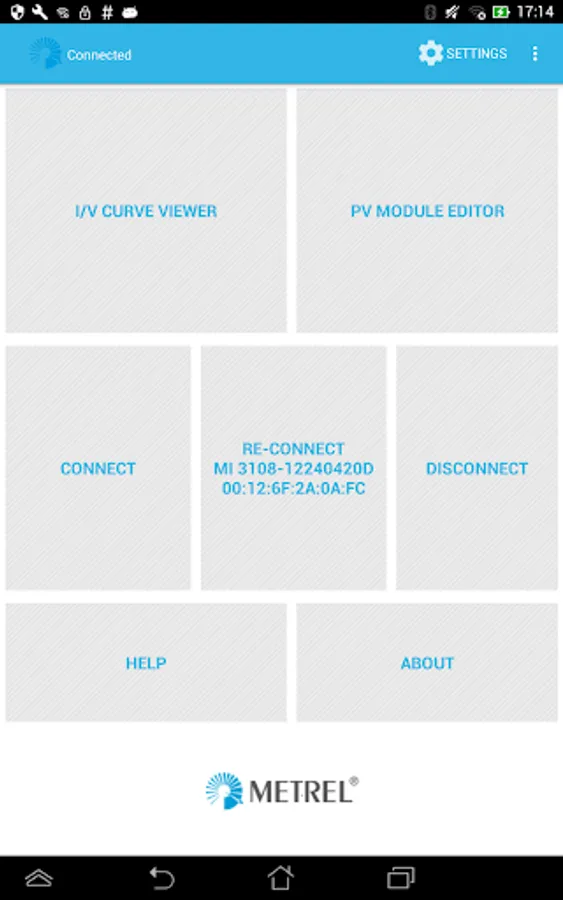 The EuroLinkPV Android is a data management tool for android tablets and smart phones. It is used at the site of testing together with Metrel’s Photovoltaic testers as a measurement pre- and post-processing tool. It enables the wireless communication between instrument and Android device. With this application testing of PV is more comfortable and effective.